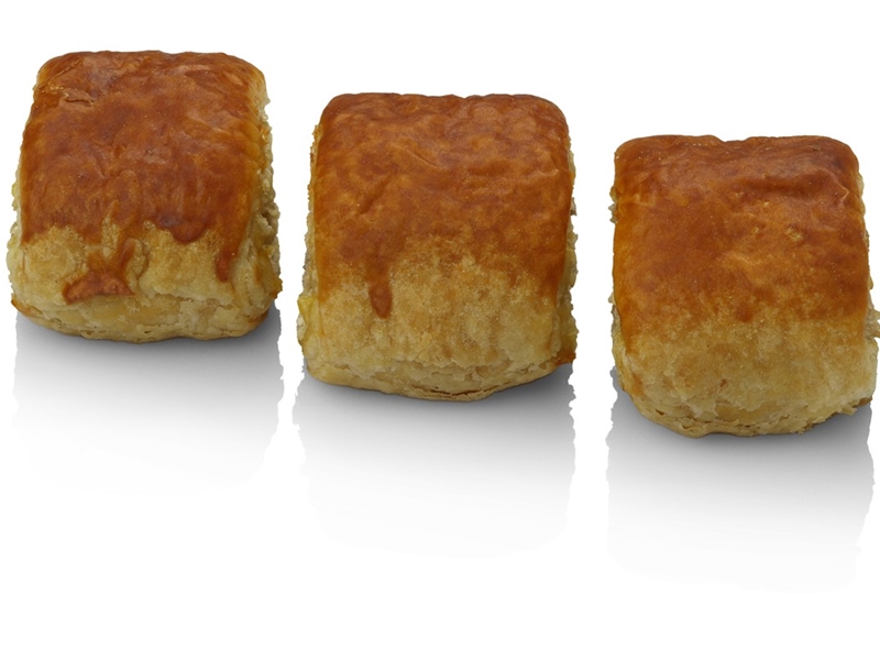 Deze kleine saucijzenbroodjes worden gemaakt van roomboterbladerdeeg en gevuld met halfom gehakt.